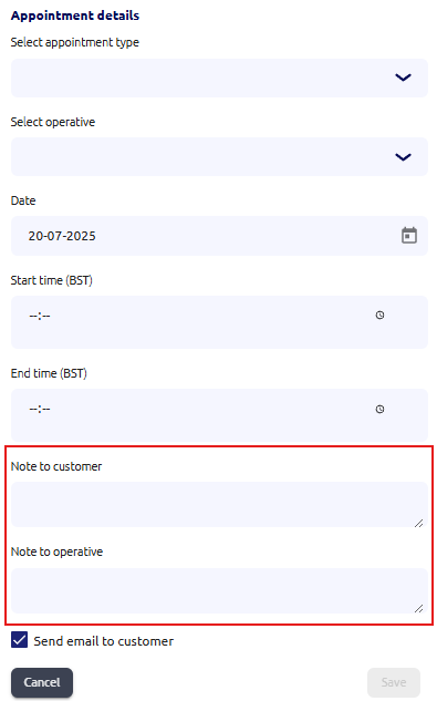 Add notes to your appointments that can be shared with the customer or with your operative who will be attending the appointment. Ensure your customers and operatives are informed every step of the way.