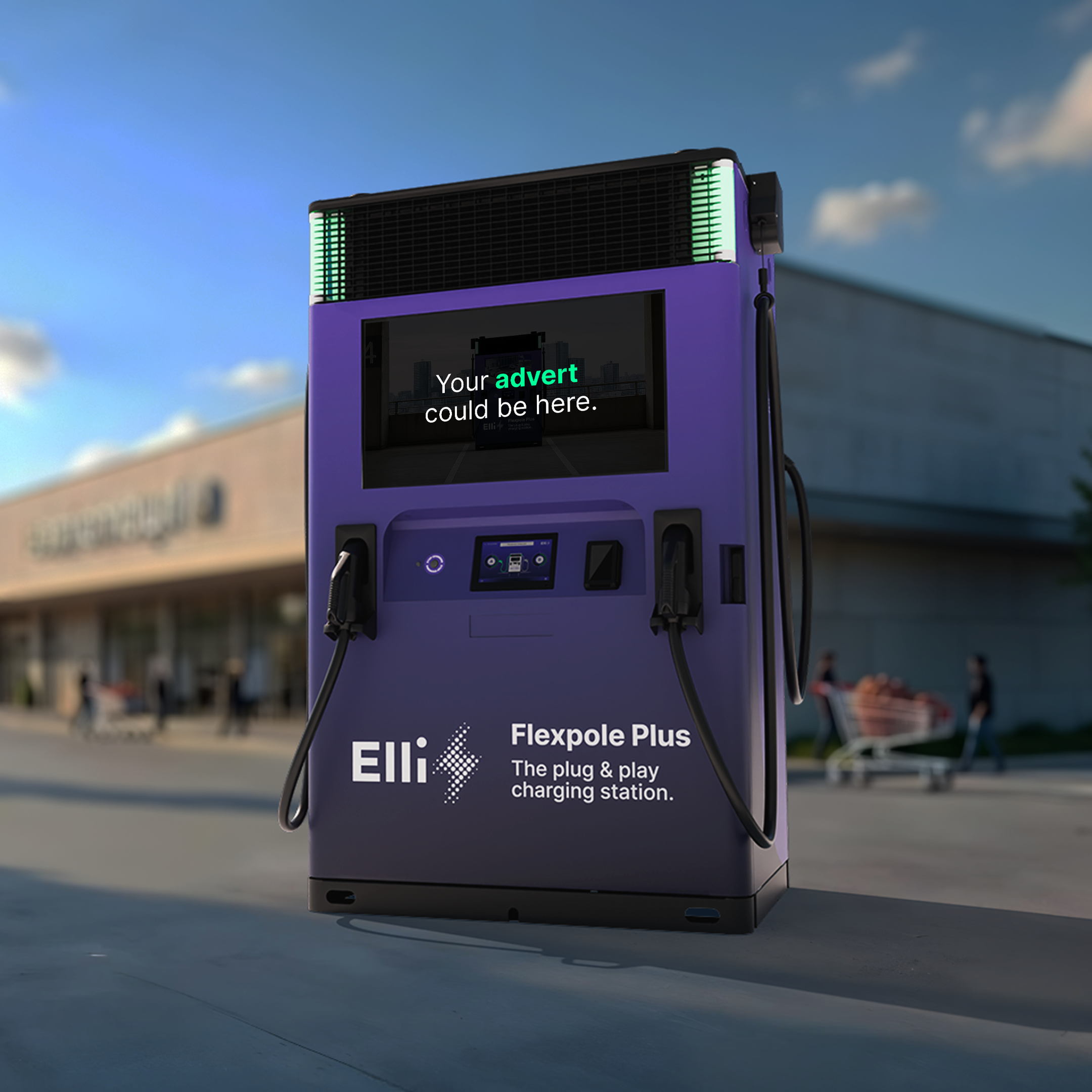 The Elli Flexpole combines a 193kWh integrated battery with 250kW fast charging power across two charge points. Designed for rapid deployment, it connects directly to low-voltage grids (16A-63A), removing the need for excavation, permits, or a transformer station.